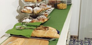 The breakfast is served in a wide, welcoming and well-kept environment, linked to a fresh furnished patio surrounded by our Mediterranean garden. The buffet, prepared every morning, is enriched by home made cakes, freshly baked croissants, seasonal fruit, organic biscuits, juices, cereals and jams. Guests may benefit also of a multifunctional coffee machine, a juicer and a toaster. WI-FI coverage is available across the breakfast area.